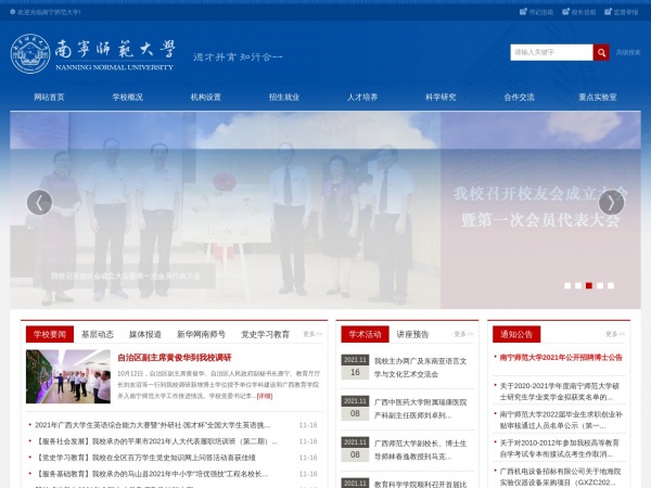 广西师范学院是中国教育部与广西自治区共建高校,是“211工程”重点支持的高校、硕士研究生教育优势学科建设工程高校、广西优势特色高校。学校设有文学院、历史与旅游学院、语言文化学院、法政学院、外国语学院、教育科学学院、生命科学学院、体育与健康科学学院等多个学院。 广西师范学院注重教学质量和科研水平的提升,积极推进国际交流与合作,为培养优秀人才做出了积极的贡献。• 访问速度打分:0.分