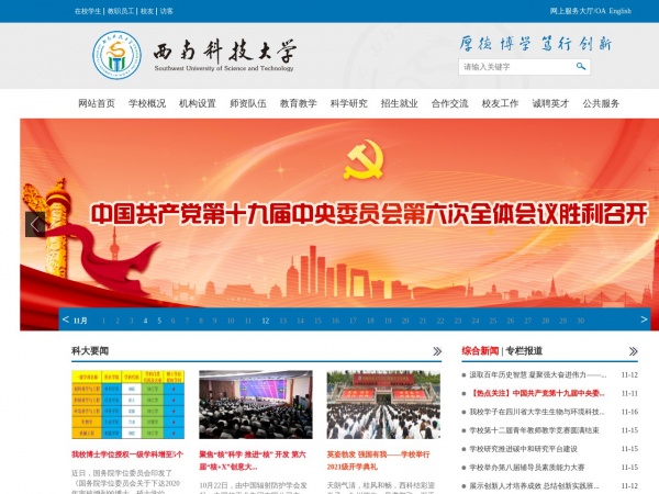 西南科技大学网页截图