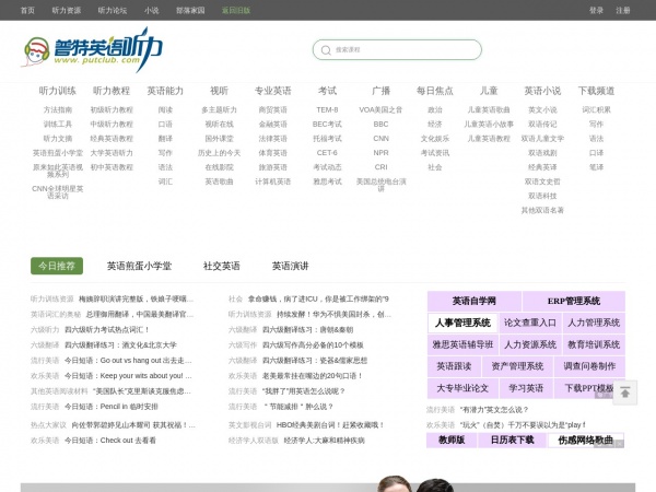 "普特英语" 是一个以英语学习为主题的网站或平台,提供英语学习资源、课程、资讯等服务,帮助学习者提高英语水平。该平台可能提供各种形式的学习材料,如英语听力、阅读、写作、口语等内容,以帮助学习者全面提升英语能力。